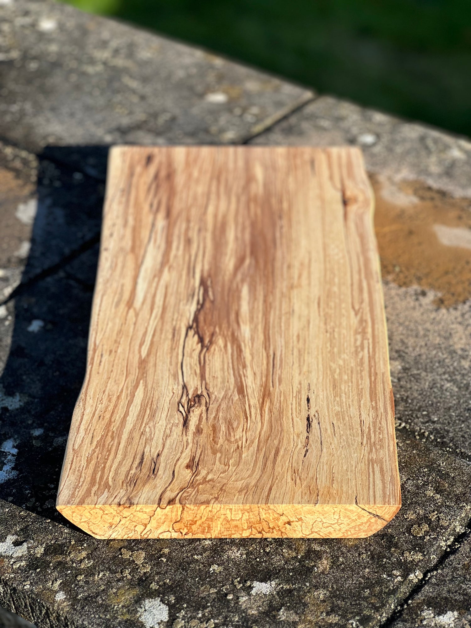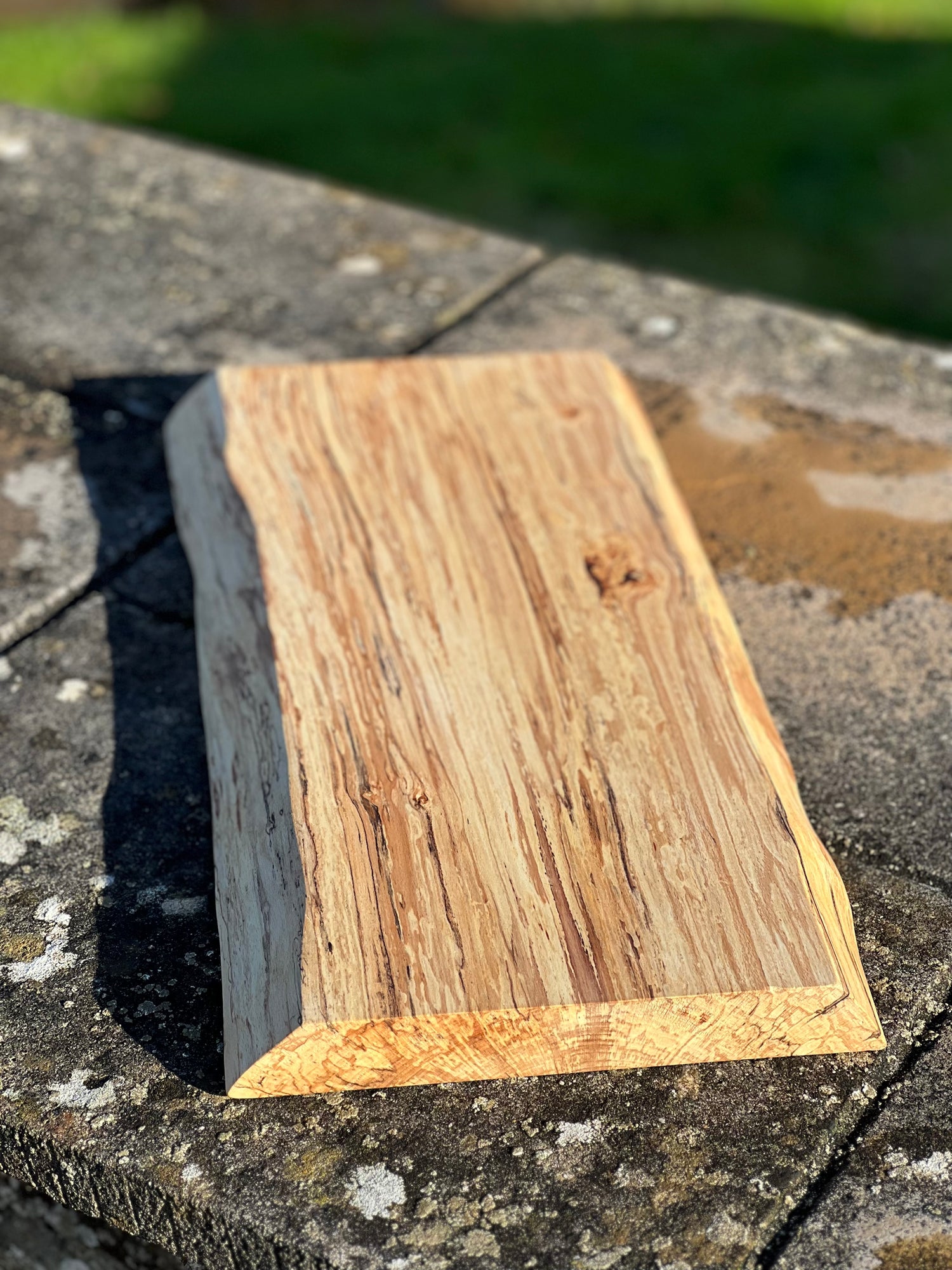 This stunning Spalted Beech Chopping Board measures approximately 49.5cm in length by 24cm in width 3cm thick and ideal as a chopping or charcuterie board.